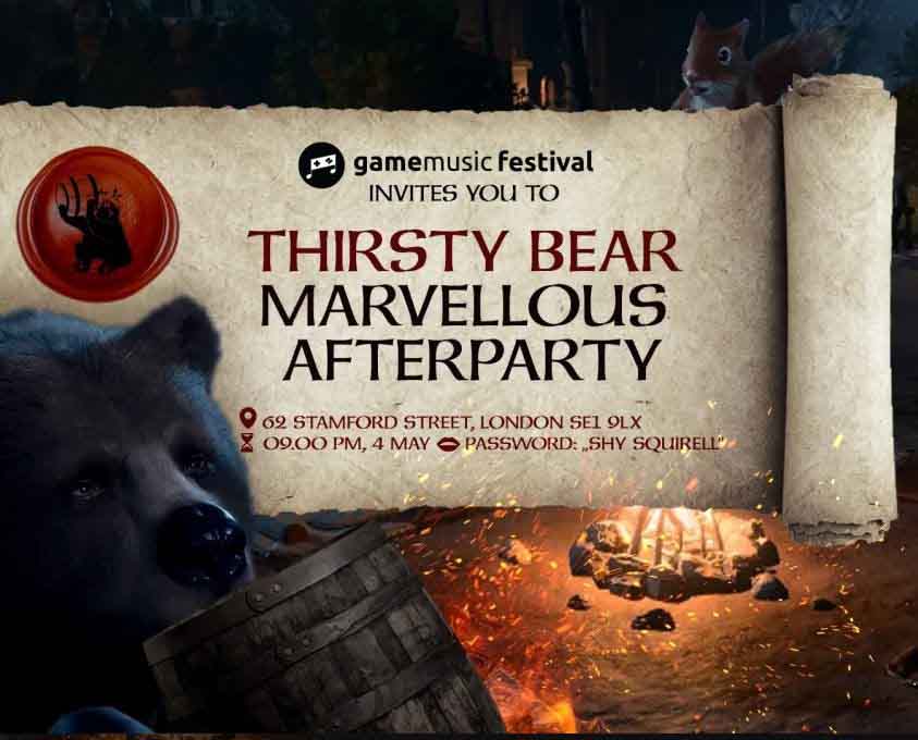 L’entusiasmo contagioso degli ospiti non si è esaurito neanche durante il party post-concerto tenutosi al pub The Thirsty Bear, “L’Orso Assetato“, ma potrei avere i ricordi offuscati dalla birra. Geniale comunque organizzare questa festicciola proprio in un pub dal nome simile, con tanto di password “scoiattolo timido” a rivangare l’epico momento in cui Larian ci presentò il Druido Halsin come personaggio giocabile con tanto di romance ursina…