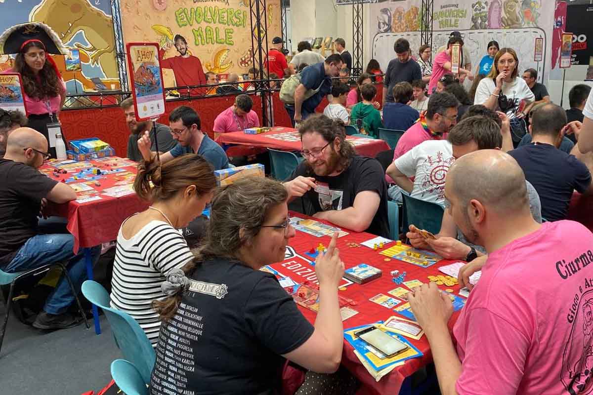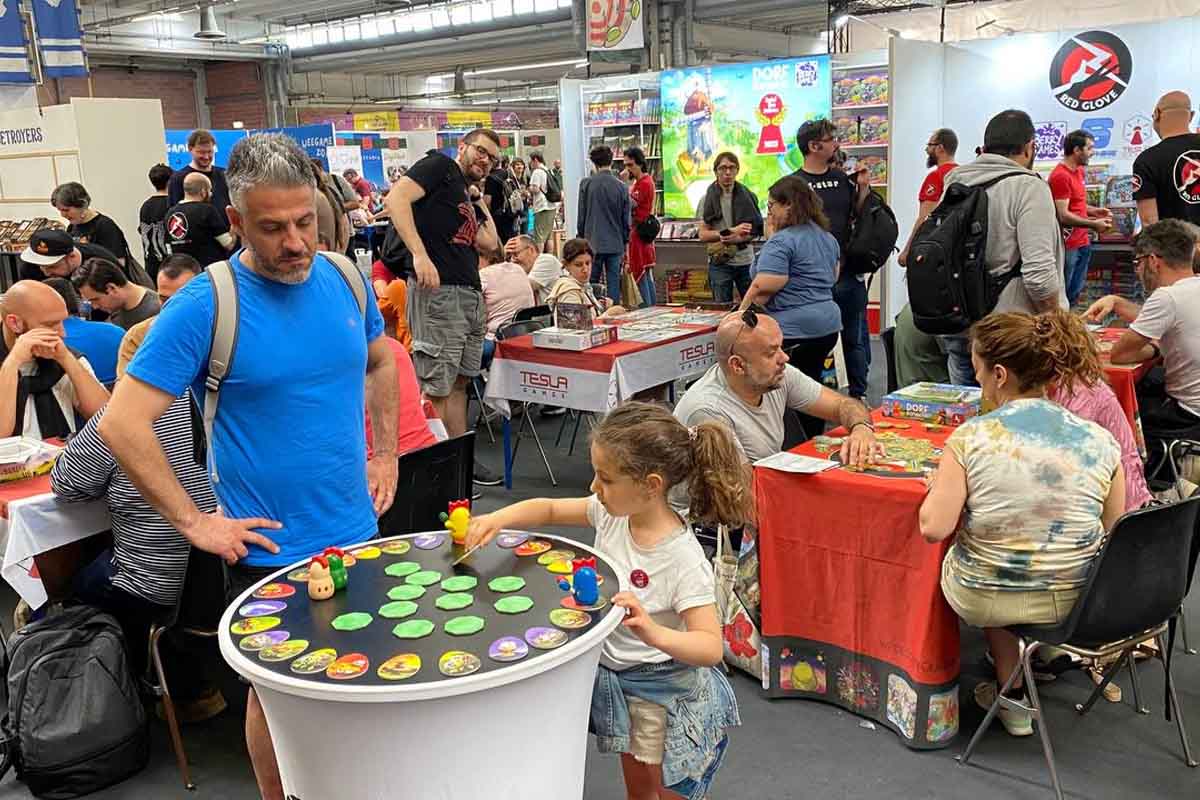 Personalmente è stata la mia prima volta assoluta al Play, e devo dire che è diventata rapidamente la mia fiera preferita: un luogo costantemente affollato ma mai soffocante dove è stato possibile giocare e provare un po’ di cose, chiacchierare con gli espositori, gli editori e gli autori, stringere nuovi contatti e farsi nuovi amici. In ogni spazio c’erano tavoli pieni ovunque dove giocavano anziani e bambini, uomini, donne e persone non binarie, nella tranquillità e nel divertimento più assoluti.