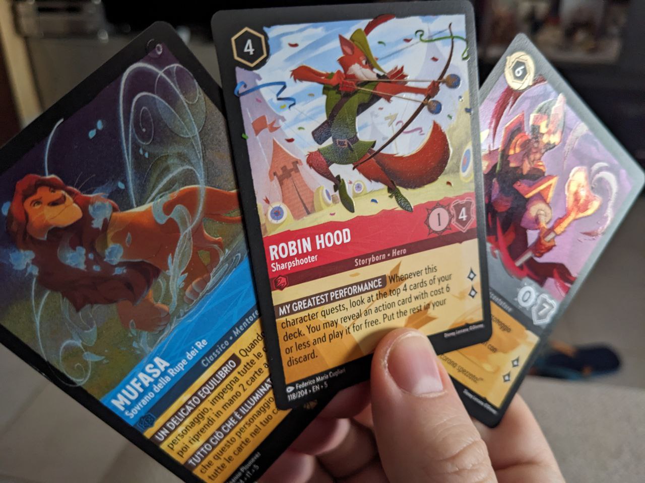 Tra le new entry più interessanti per lo zaffiro troviamo invece Merlino – Intellettuale Visionario, che permette di cercare una qualsiasi carta nel mazzo a patto che sia stato giocato con Trasformazione. Si contano davvero sulle dita di una mano le carte in Lorcana che permettono di cercare una carta specifica nel mazzo, e ancora meno sono quelle che hanno un’abilità come il nuovo Mufasa – Sovrano della Rupe dei Re. Questa carta permette infatti di riprendere 2 carte trasformate in inchiostro dal calamaio, ma non solo: ogni volta che va all’avventura può addirittura preparare tutte le carte del calamaio. In pratica permette di usare 2 volte gli inchiostri disponibili in un solo turno, per non parlare poi delle sue 4 leggende e di 9 punti volontà.