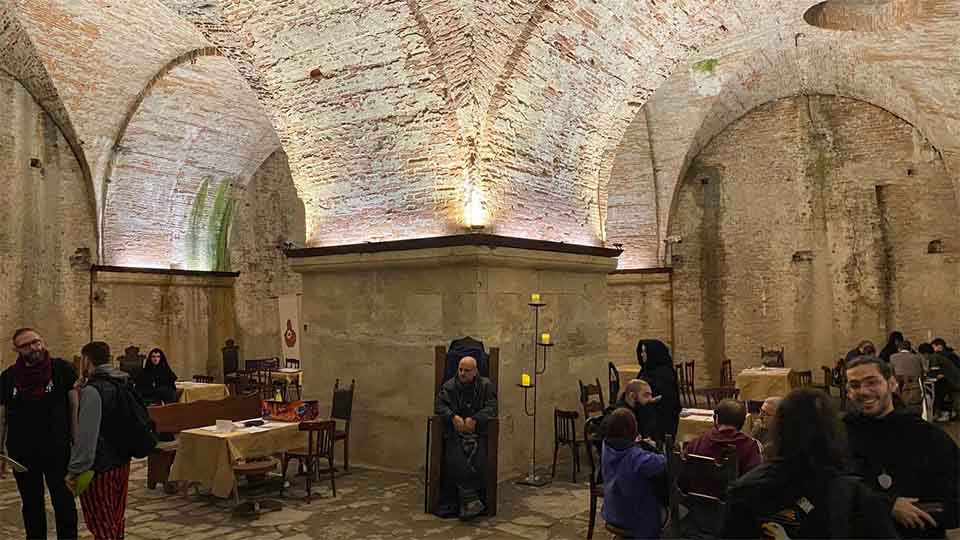 L’atmosfera che si è creata nel sotterraneo è stata davvero suggestiva, e sarebbe veramente una bella opportunità ripetersi nei prossimi anni con tavoli e sessioni di giochi di ruolo da tenersi in un ambiente simile. Speriamo bene!