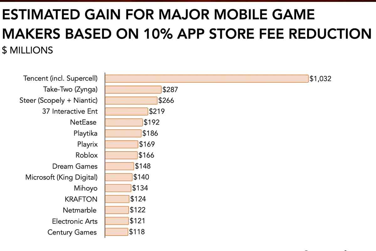 D’altra parte l’esito della causa Epic-Apple è destinata ad avere ripercussioni sull’intero settore: la prospettiva di margini di guadagno più ampi sulle vendite del settore mobile potrebbe portare nei prossimi anni a un aumento sensibile delle produzioni e degli investimenti nel settore, accelerando una tendenza già evidente nei mercati asiatici. Una stima elaborata da Superjoost immagina che una riduzione del 10% delle fees sul mercato mobile possa portare oltre 4 miliardi di dollari annui in più nelle casse dei maggiori produttori di giochi mobile: un torta golosissima e un incentivo a scommettere ancor più in questo segmento di mercato.