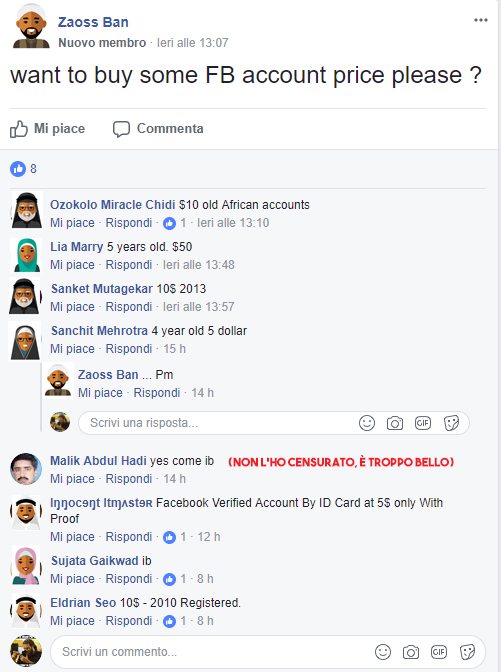 In fondo, l’immagine qui sotto è molto appetitosa, lo capisco benissimo, tutti vorrebbero avere un account fake dove spammare i propri articoli nel gruppo senza ricevere ritorsioni e senza esporsi troppo.