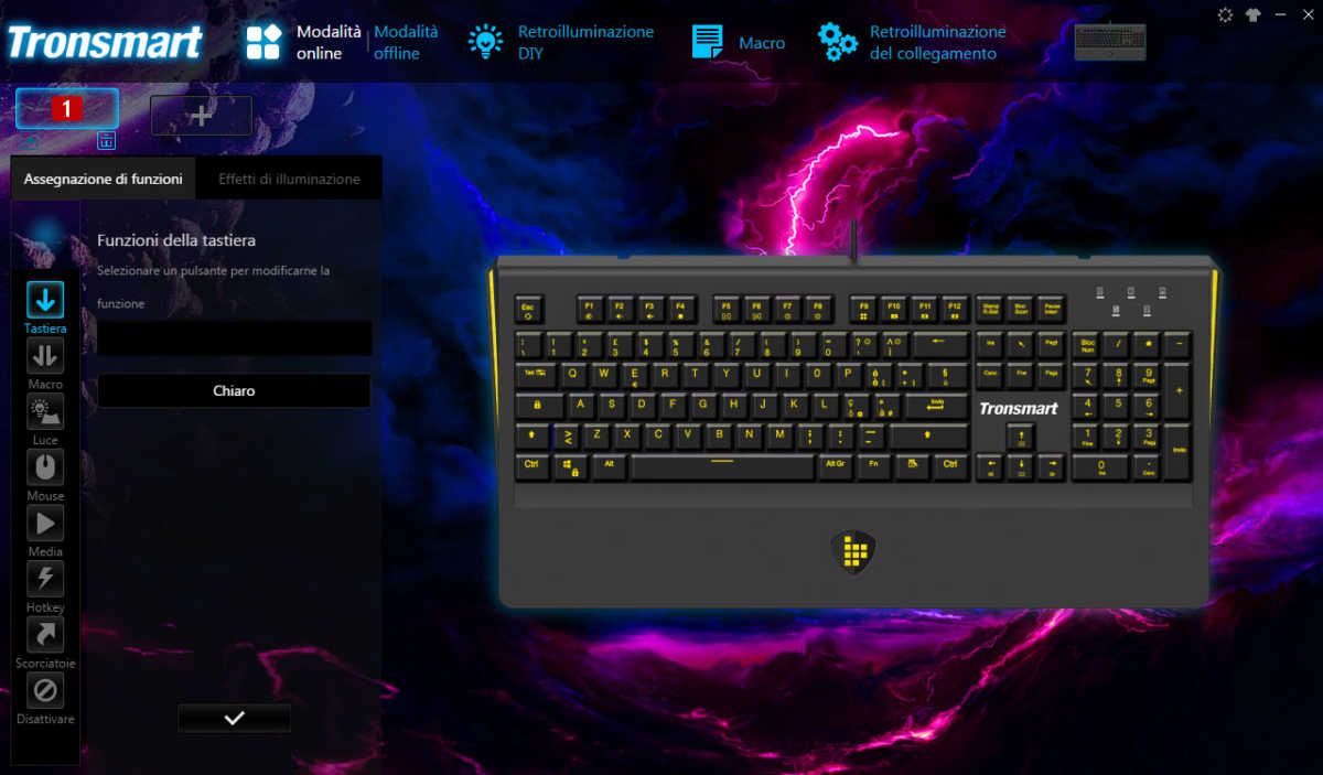 La tastiera è un prodotto plug and play, ovvero non necessita di alcun firmware per poter essere utilizzata ma sarà funzionale non appena collegata. Per sfruttarne appieno le caratteristiche, tuttavia, sarà necessario installare il software Tronsmart Radiant, disponibile sia online sia tramite CD all’interno della confezione.