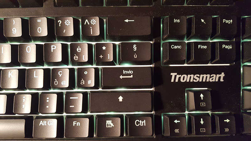 In ultima istanza, un accenno sui tasti della tastiera. Come già accennato, la tastiera viene venduta con layout italiano, quindi presenta accenti e altri simboli utilizzati nella lingua italiana. Discutibile tuttavia la scelta di posizionare il tasto “ù/§” sopra il tasto “invio”, andandone di conseguenza a dimezzare le dimensioni. Il tasto non è importante nel caso la tastiera sia stata acquistata con il gaming in mente ma per chi, per lavoro o per diletto, spende molto tempo al PC a scrivere, raggiungere il tasto ù risulta problematico e vi è la necessità di adattarsi alle dimensioni ridotte del tasto invio (per la prima settimana di utilizzo infatti chi vi scrive, tra l’ilarità degli amici internazionali, terminava una frase sì una no con ù”.