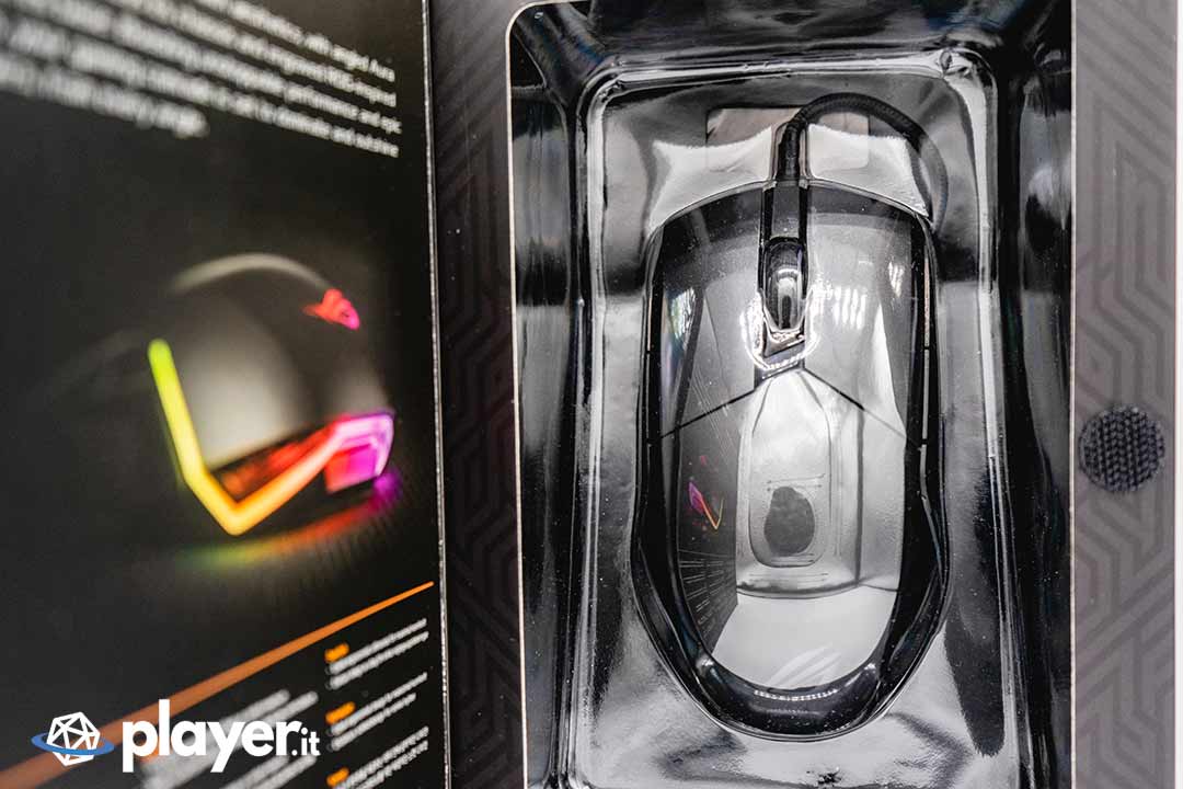 Asus non ci da tante informazioni tecniche sul laser ottico, sappiamo che ha una sensibilità di 7200 dpi, una velocità massima di tracking di 150 IPS e un’accelerazione massima di 30G.