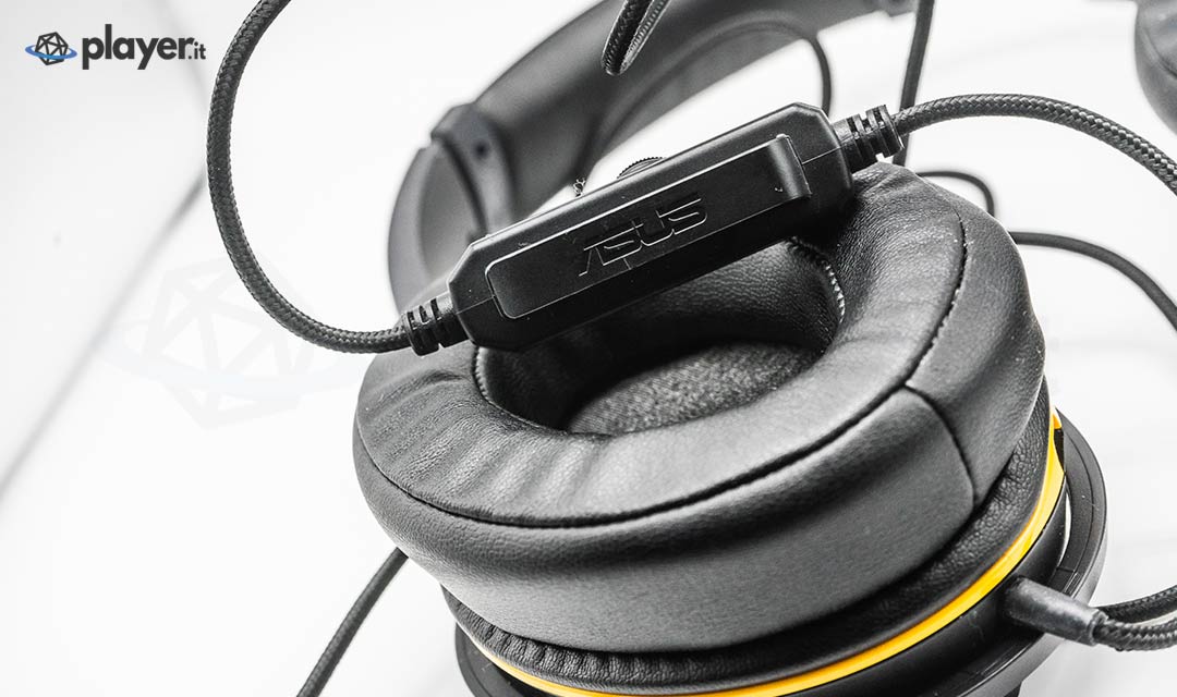 I padiglioni, ruotabili di 90 gradi, ricoprono l’intero orecchio e sono realizzati con un imbottitura rivestita di pelle sintetica, purtroppo, non intercambiabile. I bordi sono di un acceso colore giallo. Qui troviamo anche un’entrata per il microfono rimovibile.