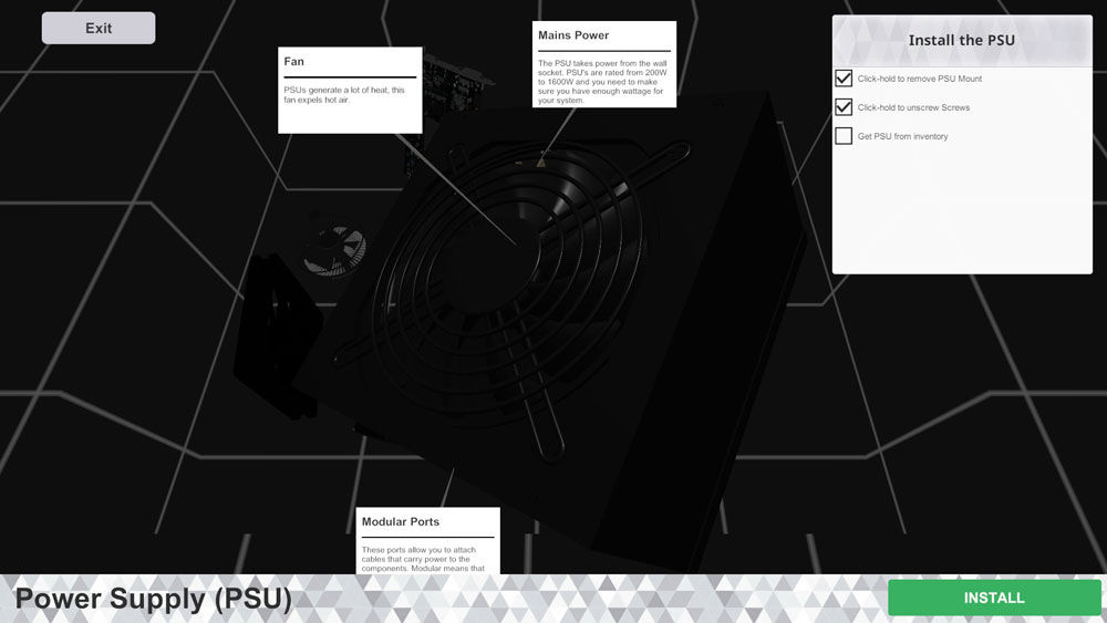 Non è solo la visuale in prima persona ad offrire maggiore realismo a questo titolo ma anche la minuziosa cura nei dettagli nei passaggi da compiere per costruire il nostro PC, dalle viti da togliere al poco di pasta termica che basta installare il dissipatore, dai collegamenti elettrici alle levette per inserire le RAM.