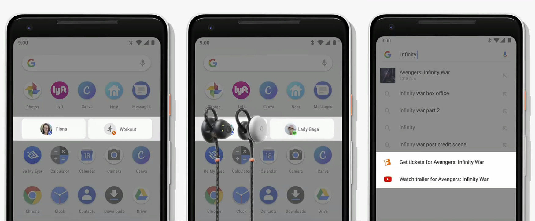 App Action altro non è che l’evoluzione delle vecchie “applicazioni consigliate“, già introdotte in Android l’anno scorso. Se, prima, il dispositivo era in grado di consigliarci le applicazioni utilizzate di più, adesso egli incrocia le informazioni sulle nostre abitudini settimanali con l’orario di quel particolare momento del giorno e con i dati relativi agli utilizzi specifici di questa o quell’altra app. Non ci consiglierà più solamente l’app “Contatti”, ma ci consiglierà di chiamare nostra sorella nel momento della giornata in cui siamo soliti farlo. Se poi fosse quel giorno della settimana in cui lei lavora fino a tardi e noi non la chiamiamo mai non disperate: Android P lo saprà. Similmente Slice ci permetterà di utilizzare applicazioni dentro altre applicazioni. Il nostro smartphone adattivo, infatti, utilizzerà i suoi nuovi algoritmi d’apprendimento per capire quando è il caso di aprire una finestrella di just-eat dentro la pagina Google su cui abbiamo cercato: ristoranti vicini, e così via.