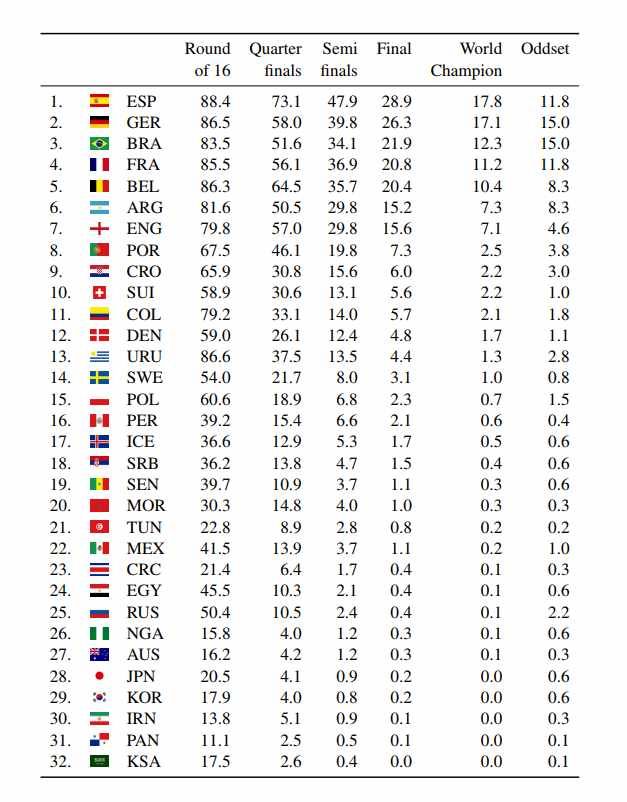 L’intelligenza artificiale realizzata dai ricercatori è stata nutrita con una enorme quantità di dati, dalla popolazione nazionale di una squadra alle quote che i bookmaker assegnano alle stesse, ed ha quindi ricreato un’ ideale mondiale di calcio; successivamente il sistema ha iterato tale mondiale per oltre centomila volte ed ha tirato fuori i suoi risultati; delle conclusioni verosimiglianti.
