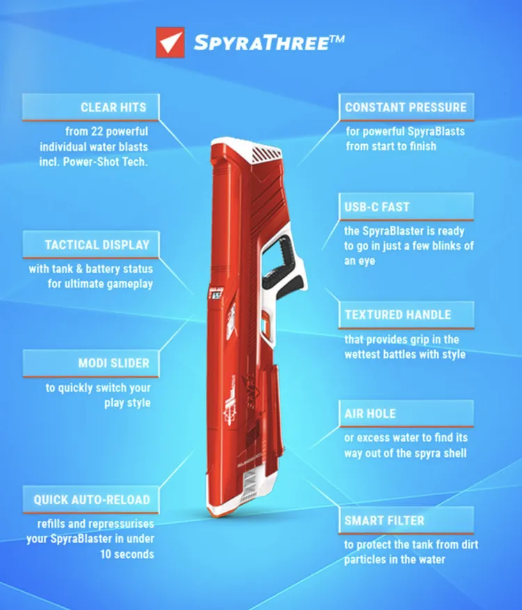 Sypra si è fatta un nome creando potenti pistole ad acqua elettroniche, la prima delle quali è stata lanciata su Kickstarter nel 2018. Ora, l’azienda sta aggiungendo una terza pistola ad acqua alla sua linea, giustamente chiamata SpyraThree, e include modalità aggiuntive per quando volete prendere le vostre battaglie super seriamente o siete solo alla ricerca di un divertimento estivo casuale.