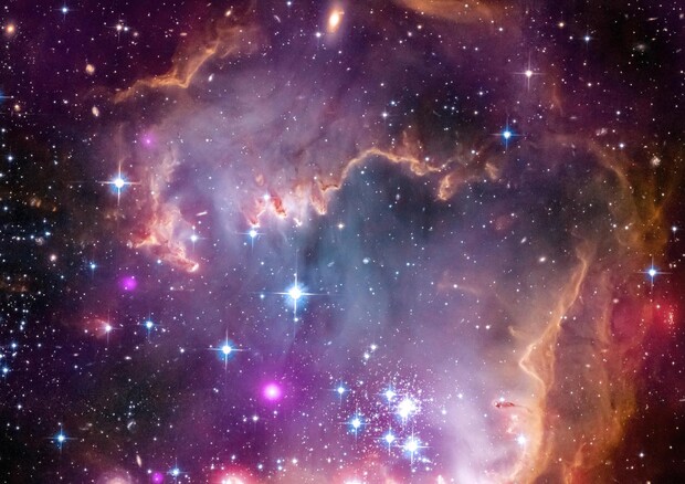 Le quattro immagini qui sopra sono disponibili ad alta risoluzione sul sito web del Chandra X-Ray Observatory. L’immagine in alto a sinistra è un ammasso stellare chiamato NGC 346, situato in una galassia satellite della Via Lattea chiamata Piccola Nube di Magellano.