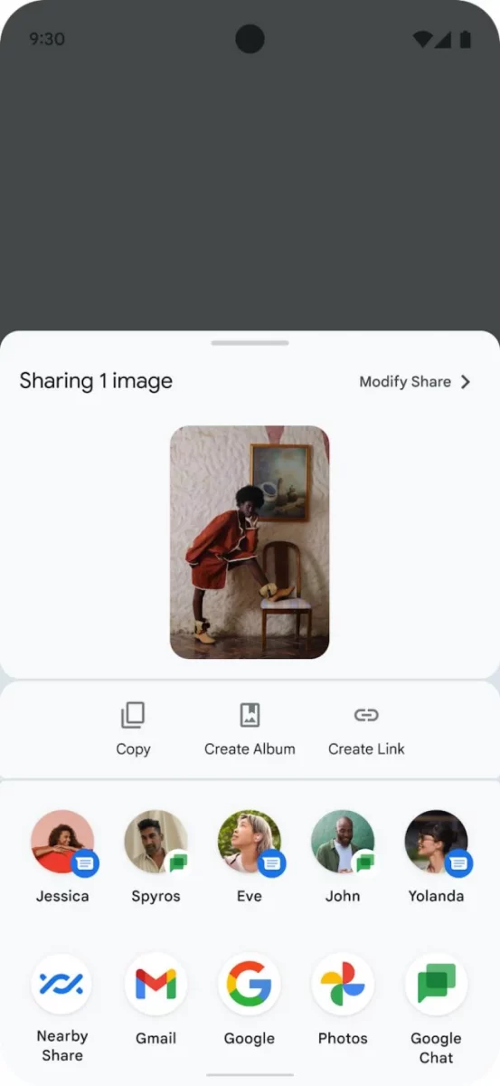 Le funzionalità di condivisione sono state rivisitate per facilitarne l’accessibilità. Gli sviluppatori hanno messo a punto un unico menù di condivisione, sempre accessibile a prescindere da quale app stiamo utilizzando, che ci permetterà a colpo d’occhio di individuare il metodo di condivisione preferito e la app di destinazione.