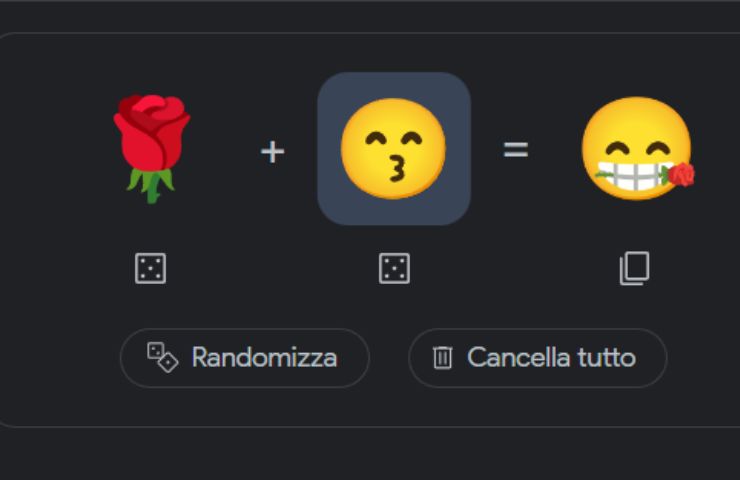 Si può anche scegliere di scegliere una delle due emoji in maniera casuale cliccando sul dado oppure entrambe allo stesso momento cliccando sul tasto “randomizza”.