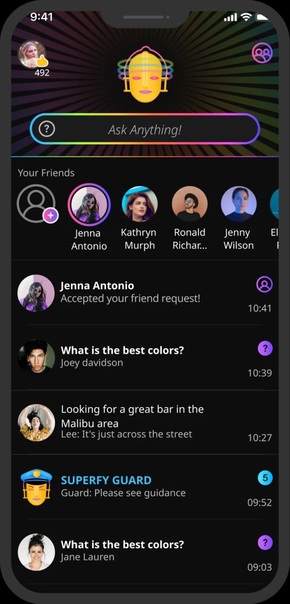 Superfy ha invece lo scopo di unire l’immediatezza delle moderne tecnologie con la ricchezza che solo una comunicazione tra esseri umani è in grado di produrre. In questo senso, il ruolo dell’AI non è quello di fornire risposte, ma di mettere in contatto gli utenti in modo che, qualunque domanda si ponga, si possa essere messi in contatto con una persona che presumibilmente sia in grado di rispondere. Questo si può declinare ovviamente in un servizio “chiedi all’esperto” immediato ed efficiente, ma ottempera anche ad un altro scopo cui l’Ai non sarebbe mai in grado di sopperire: una conversazione casuale, amichevole e “sul pezzo” anche in merito a questioni frivole o di vita quotidiana, cui nessun algoritmo saprebbe mai rispondere.