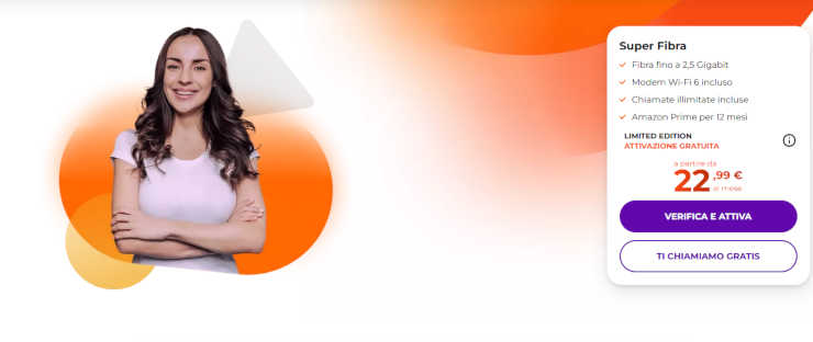 L’offerta è attivabile online, cliccando sul tasto “Verifica e attiva” oppure su “Ti chiamiamo gratis” per essere contattati dall’assistenza clienti; volendo è anche possibile verificare che sia presente la copertura per la Super Fibra nella propria città.