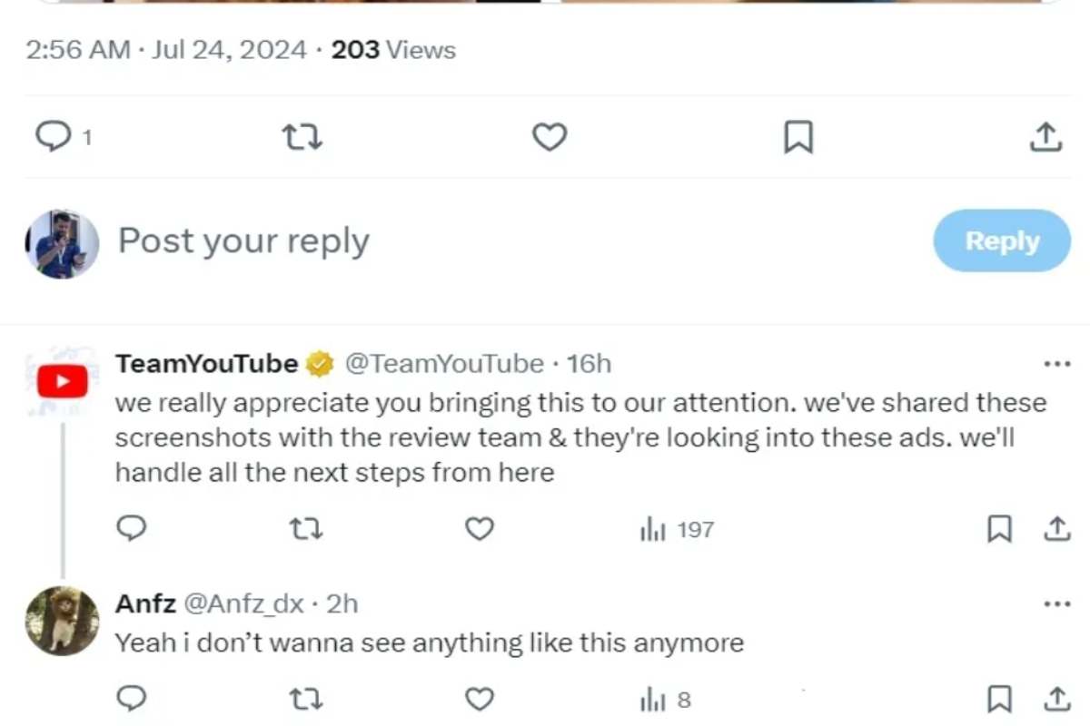 Un tipo di pubblicità che ovviamente sta creando momento di imbarazzo in famiglia o sul posto di lavoro, mentre si guarda qualcosa in presenza di altri. Youtube e Google ovviamente sono a conoscenza del problema e, come si vede, starebbero già lavorando per cercare una soluzione.
