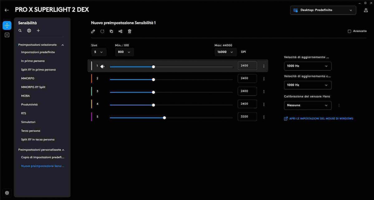 Passando ora alle possibilità di personalizzazione, a consentire di modificare a proprio piacimento le caratteristiche del Logitech G PRO X Superlight 2 Dex, così come di molti altri dispositivi della celebre azienda, è il Logitech G Hub. Un software intuitivo, pulito e completo, sicuramente tra i migliori che abbiamo visto in giro ultimamente.