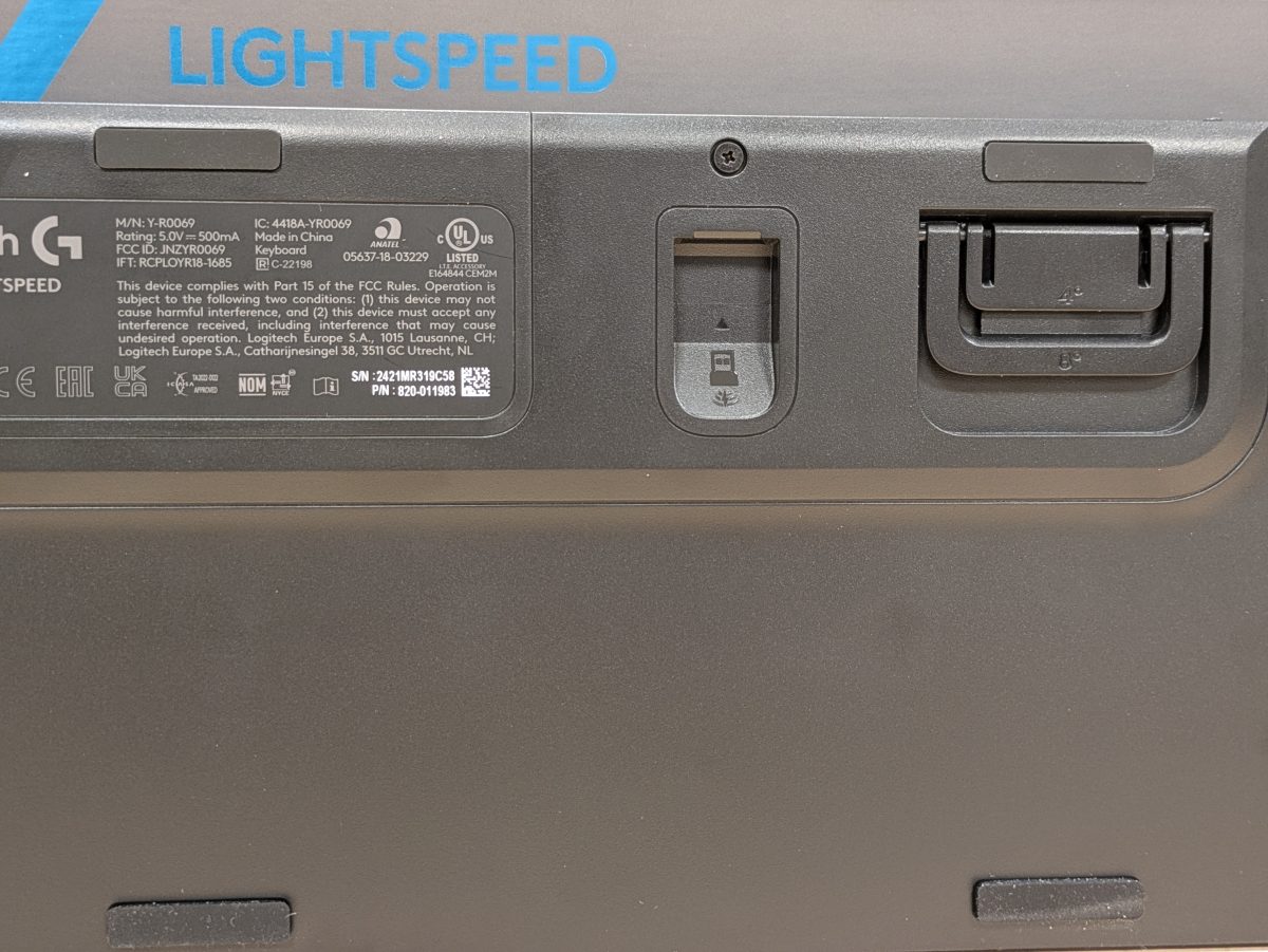 La Logitech G915 X Lightspeed arriva in una confezione ben curata e totalmente plastic-free, un dettaglio che apprezziamo molto. Al suo interno, oltre all’immancabile manualistica, troviamo ovviamente la tastiera, un ricevitore USB Lightspeed (con uno slot sul retro dove riporlo per non perderlo!) un morbido cavo USB-C di altissima qualità da 1,8 metri per la ricarica e il collegamento e un comodo adattatore USB-C/USB-A, che consente di utilizzare lo stesso cavo sia per la ricarica sia per il dongle, un tocco di praticità davvero notevole.