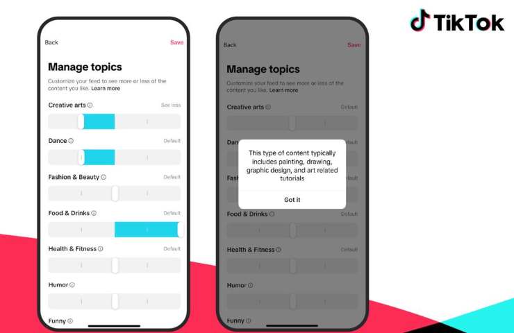 Ciò che succede su TikTok è che, in base alle interazioni, l’algoritmo propina contenuti in linea con quello che si è già visto e che è stato apprezzato. Il feed può anche essere personalizzato, ma la personalizzazione è sempre rimasta un po’ vaga.