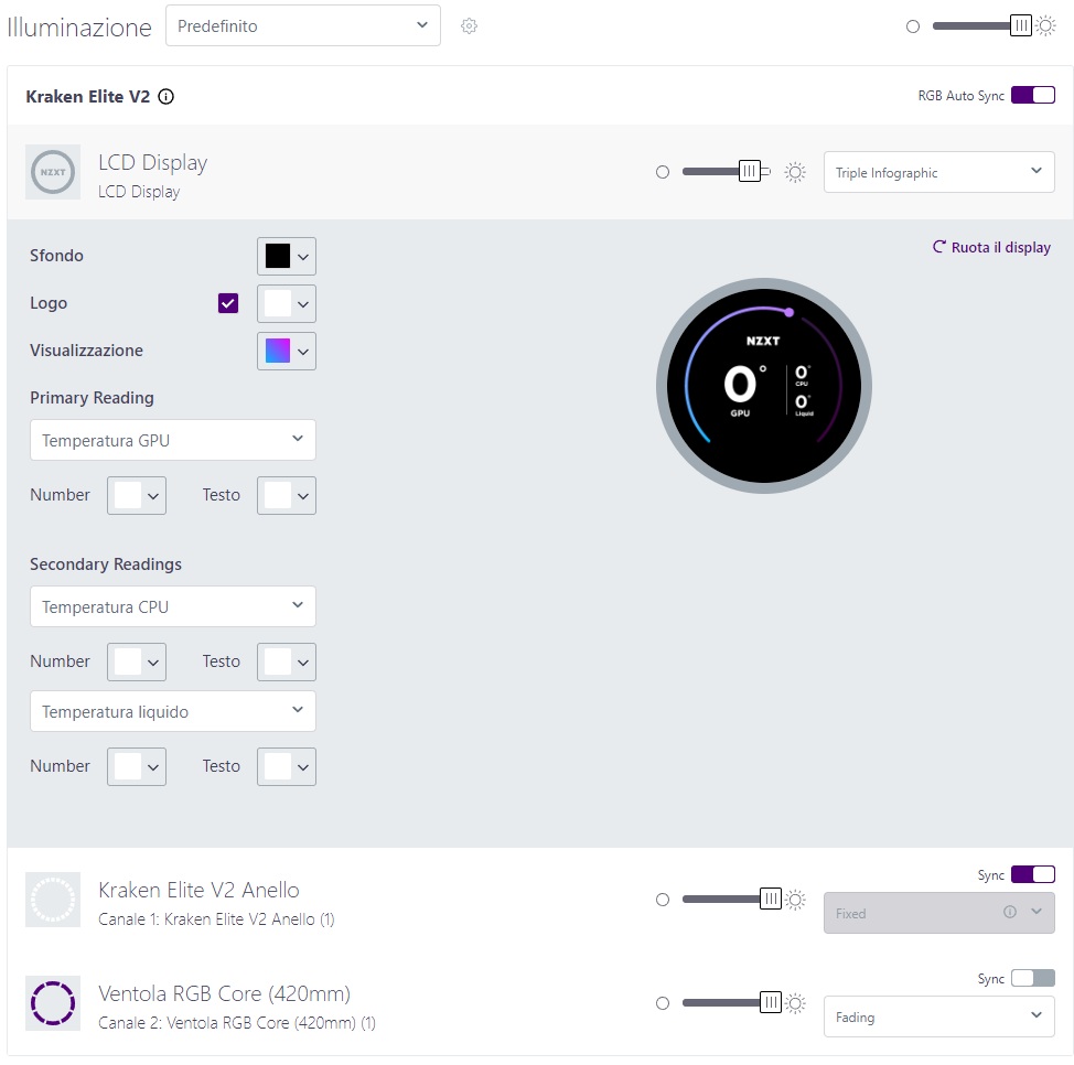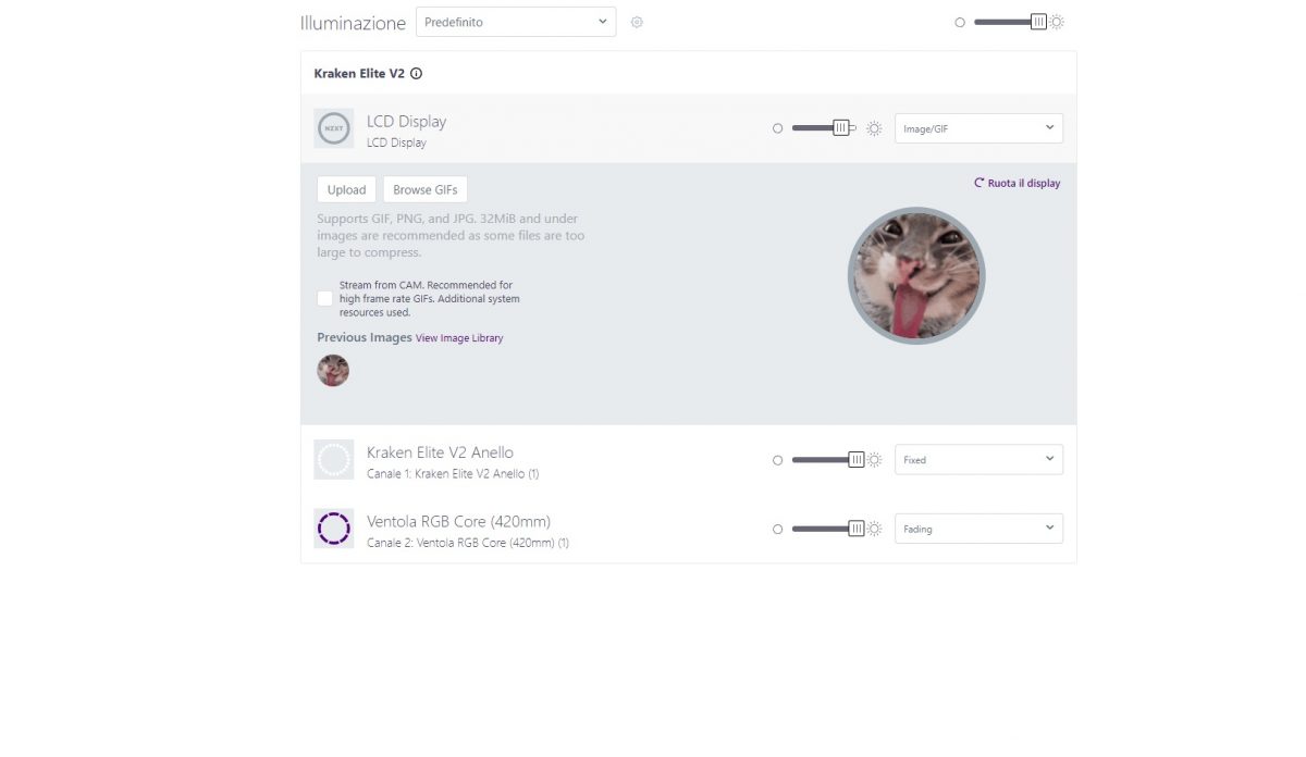 La sezione dedicata al display LCD permette all’utente di scegliere tra una serie di widget predefiniti o di personalizzare ciò che viene visualizzato dallo schermo in relativa profondità, come abbiamo anche già anticipato. Attraverso CAM NZXT erogherà anche gli aggiornamenti firmware per pompa e ventole durante il corso degli anni.