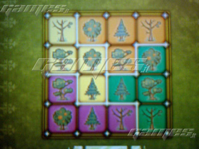 Per risolvere questo enigma dovrete dividere gli alberi in modo che ce ne siano 4 diversi in ogni sezione che traccerete, guardate la foto seguente per risolvere l’enigma: