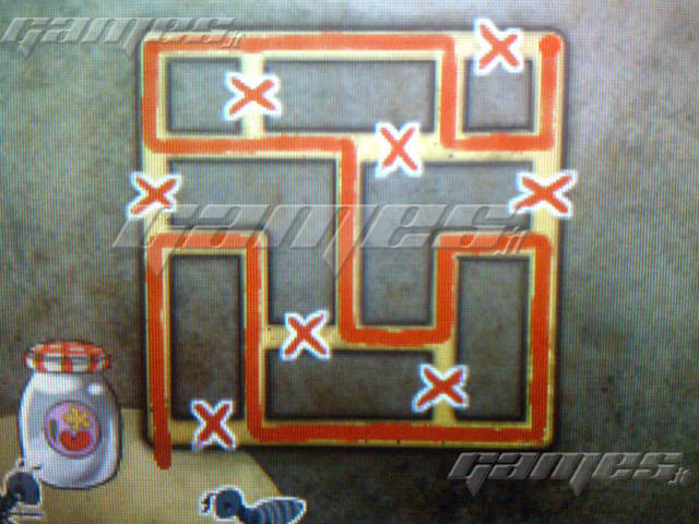 Il prima enigma consiste nel ricomporre una mappa inserendo in essa i pezzi mancanti. Vi accorgerete che vi sarà un pezzo in più rispetto agli spazi disponibili, il pezzo in questione è quello già posizionato al centro della mappa, toglietelo e concentratevi sugli altri 5.