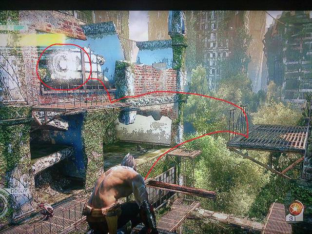 Maschera 2: Giunti nel punto in cui dovrete staccare il braccio al robot per la seconda volta e dove vi è una torretta che vi spara, lanciate Trip in alto in modo che vi faccia scendere la scala ( tranquilli, dovrete farlo per proseguire ). Salite la scala e saltate verso gli appigli sul muro che crolleranno uno dopo l’altro. Ora vi troverete su un balconcino di ferro da dove la torretta vi può colpire, saltate sul successivo per ritrovarvi nel punto esatto della nostra foto. Per prenderla vi basterà risaltare sul balconcino precedente ( quello da cui la torretta può colpirvi ) e saltare verso di essa.