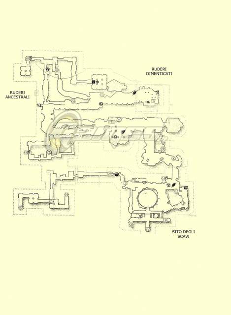 Prima di raggiungere la zona segnalate nella mappa, aprite lo scrigno del tesoro per recuperare la ricompensa di riflessione e recuperate l’Artefatto dell’Eclissi utilizzando l’abilità Mog in Azione. Dirigetevi, ora, verso il punto indicato nella mappa sul lato ovest dei ruderi ancestrali e utilizzate Mog in Azione per recuperare, dietro le sbarre, l’Artefatto degli Incontri. A questo punto avete tutte le carte in regola per aprire entrambi i portali di questa Regione. Quello a sud-est vi porterà ai Mont Yaschas 10 DD, mentre quello nelle gallerie a ovest vi porterà alla riserva di Sunleth 300 DD. A voi la scelta!
