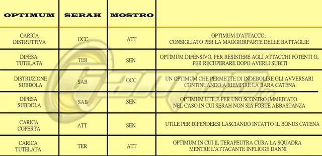 Appena arriverete a Il Vuoto Oltre seguite il percorso obbligatorio e non appena vi sarà consentito di riprendere il “comando “ del gioco, aprite la schermata degli optimum e create la vostra lista, seguendo anche, se volete, i suggerimenti nella tabella di seguito.