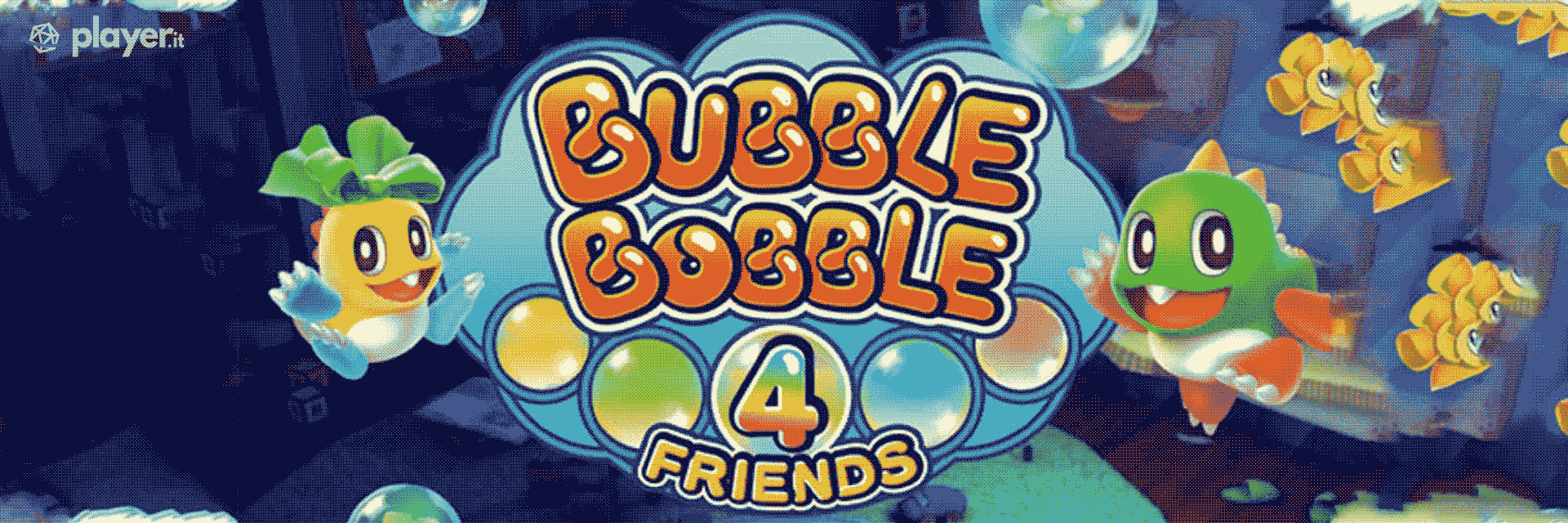 Bubble Bobble 4 Friends pubblicato nel 2019 da Taito è l’ultimo capitolo della saga di Bubble Bobble iniziata nel lontano 1986. In Bubble Bobble 4 Friends, a differenza dell’originale, c’è più spazio per i puzzle e i rompicapo, abbandonando un po’ la semplicità tipica dei titoli arcade. Gli scenari saranno più ampi e complessi, allungando anche la durata dell’avventura.